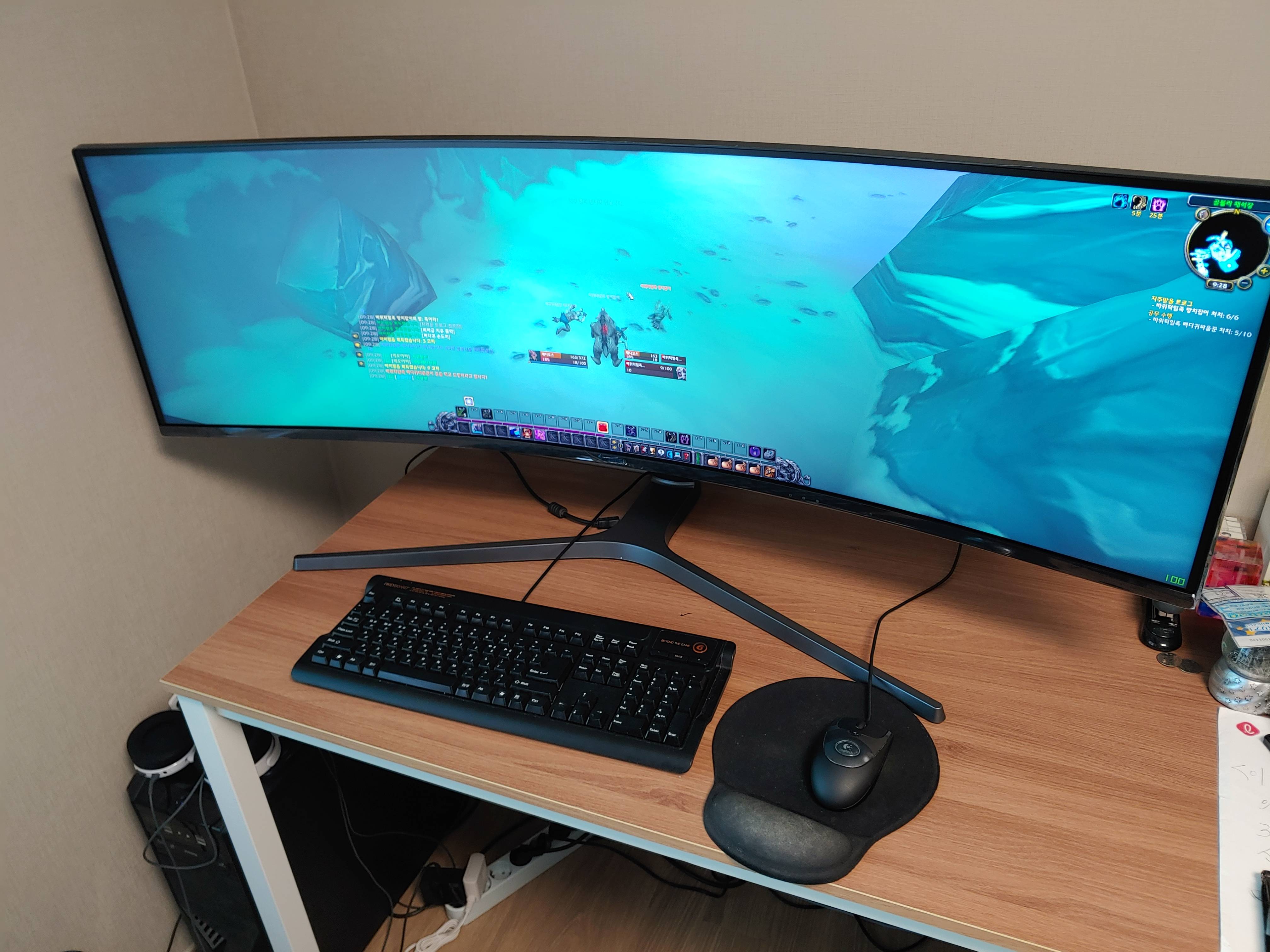 화면 좌측이나 우측에 놓인건 고개돌리고 써야해서 윈도우 시작버튼 누르기도 불편하군