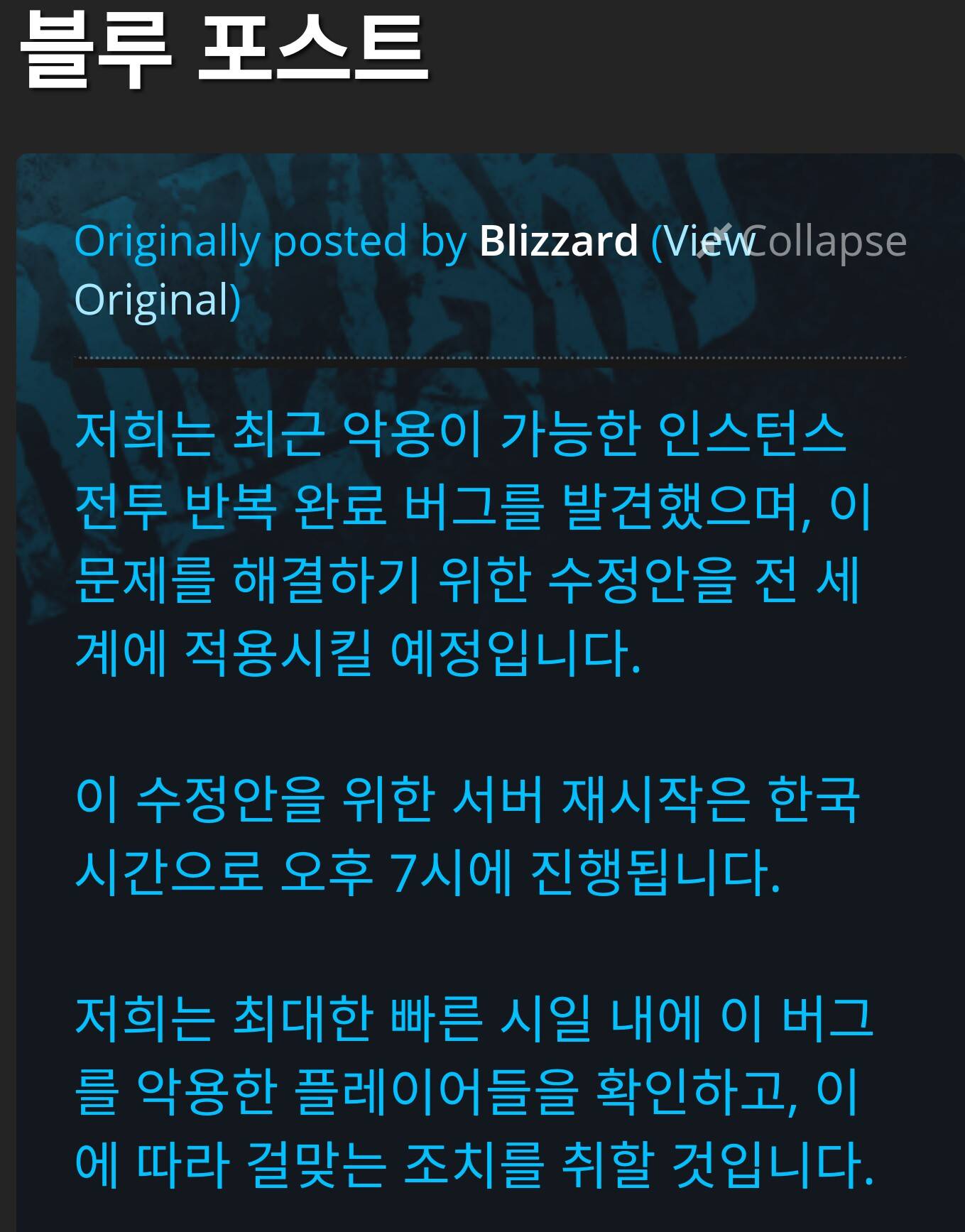 서버 재시작은 7시에 시작됩니다 부분입니다선생님