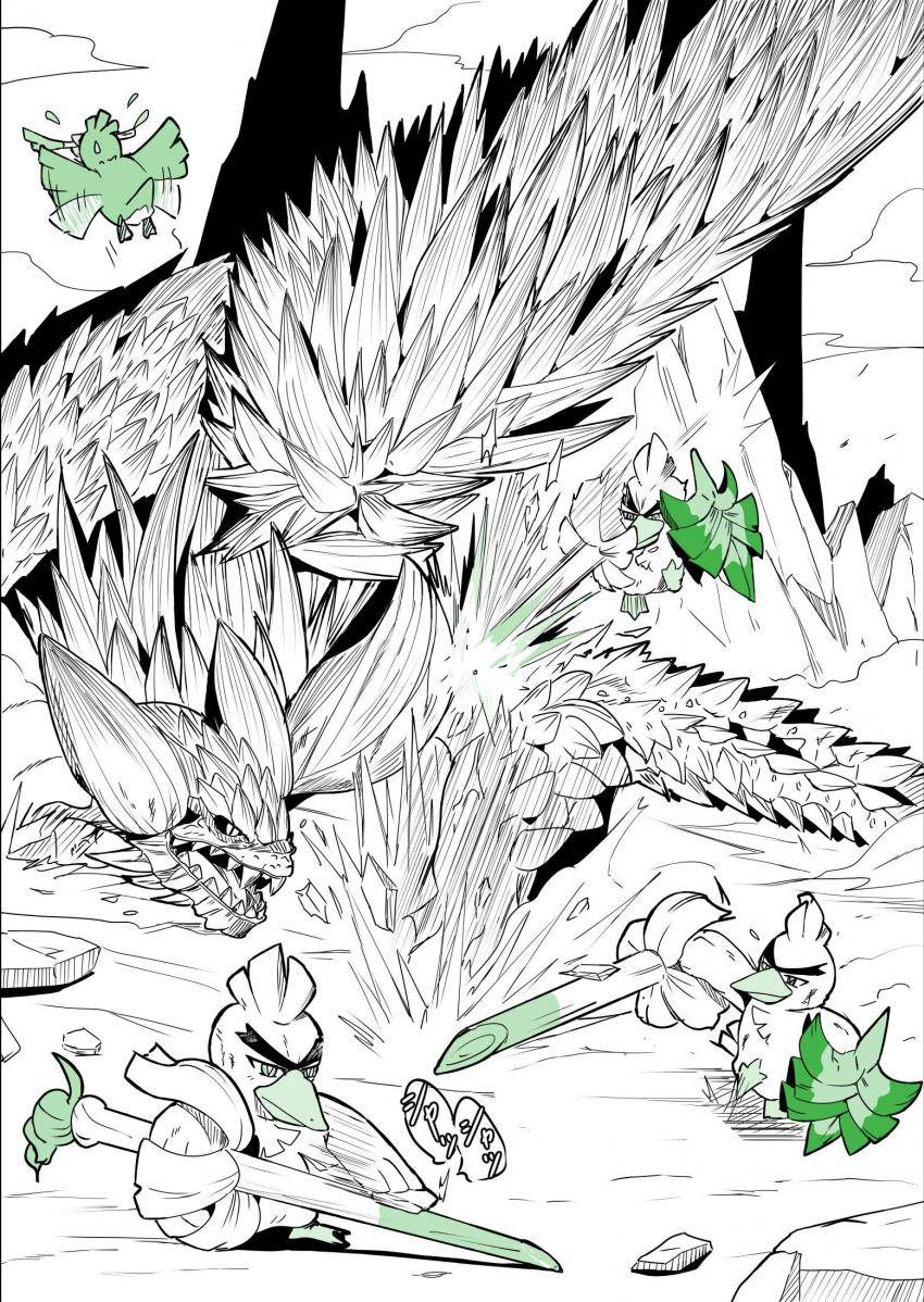 창파나이트는 파의 날카로운 줄기를 창처럼 휘두르며 두꺼운 잎을 방패로 삼아 싸웁니다.