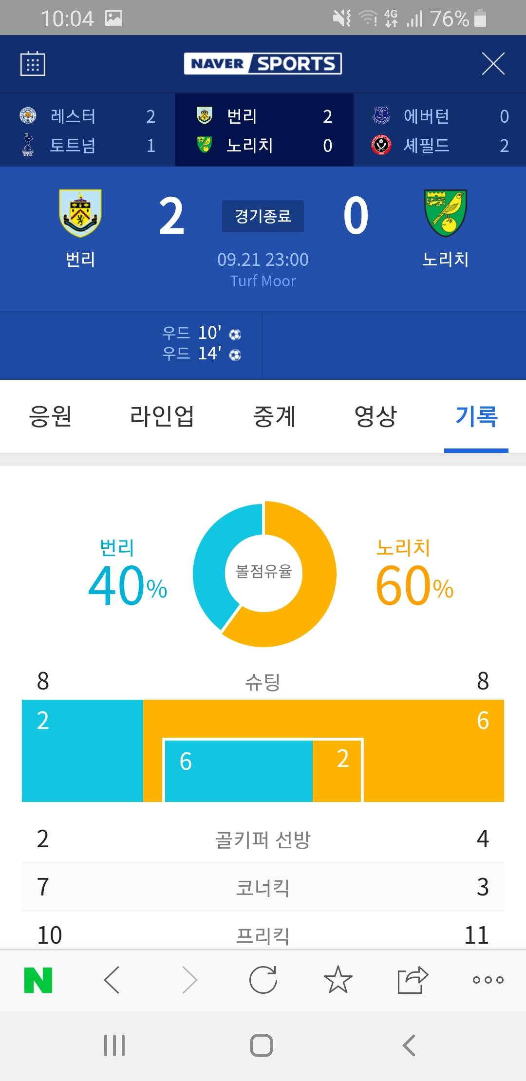 맨시티와 리버풀을 좌절 시킨 노리치를 이긴 번리