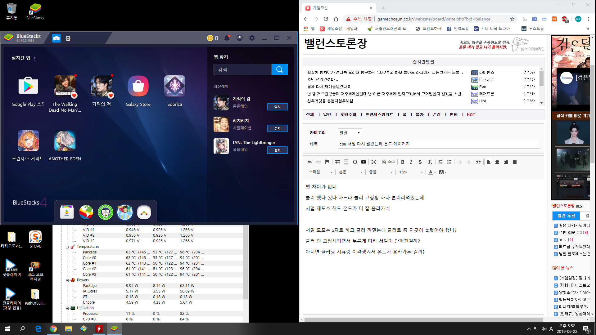 이거 본문 작성하면서 블루스택만 실행시켰는데 온도 저러네