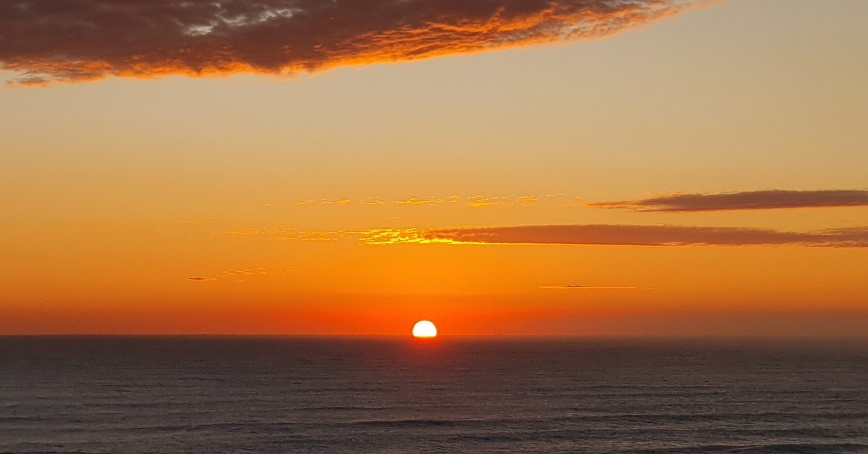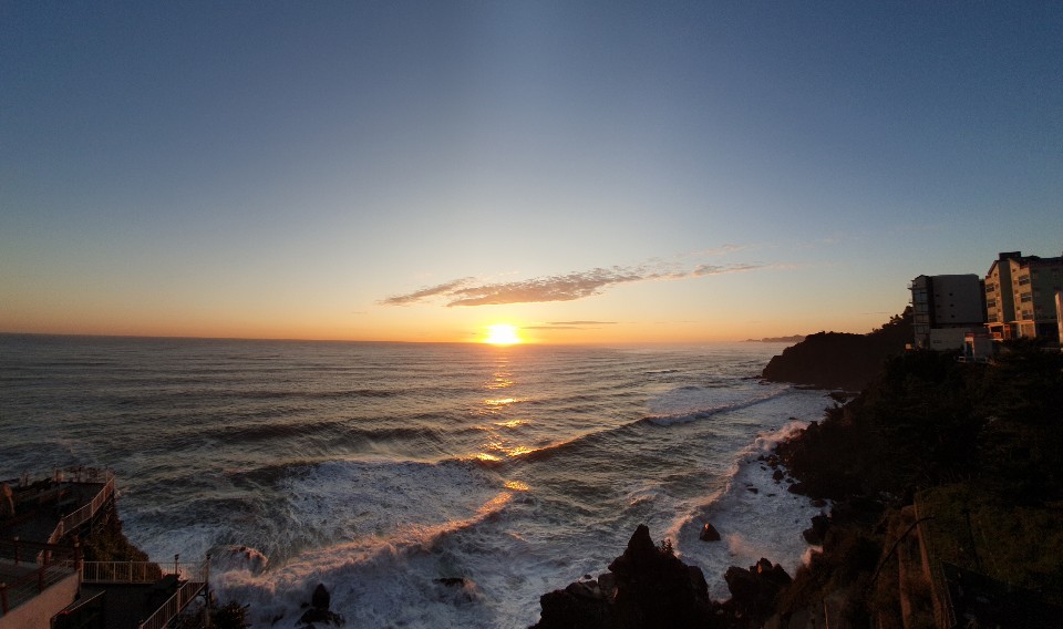어제는 날이그렇게 꾸리하더니 오늘 날이좋아 일출이 수평선에