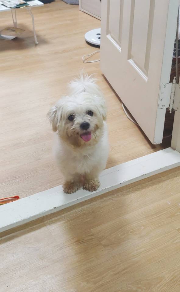 바로 앉아 손 하고 애교부리는데 짖지도 않고 이리와하면 이리오고 기다려하면 기다리고 아쥬 완벽한 멍뭉이야