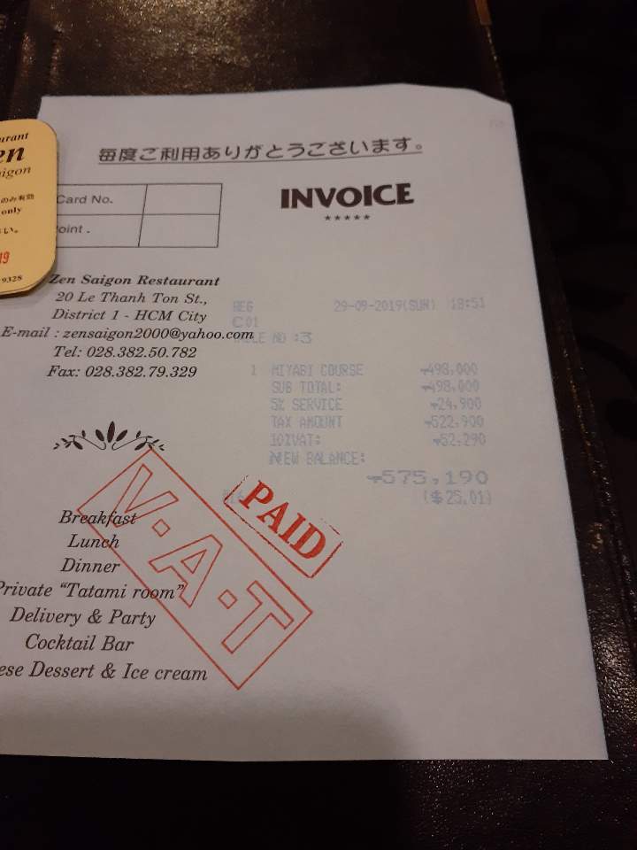먼저 Zen 이라는 일식집에 갔다. 호치민에 초밥집은 많으나 일식집은 별로 없어서 나름 기대를 하고 들어감. 메뉴는 제일 비싸게 적힌 코스요리를 골랐다(그래봐야 한국에 비하면 매우 싸다)
