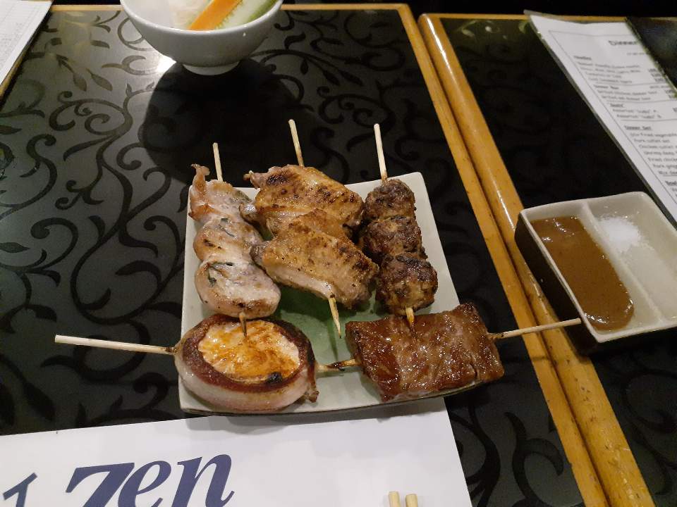다음으로 나오는 모듬 꼬치와 식사류, 우하단의 산적같은 녀석은 기름기 없는 담백한 부위로 해서 나와서 사람에 따라 텁텁하다고 느낄 수 있을 것 같다. 좌하단의 동그란 버섯같은 녀석은 통 연어 구이인데 호오~ 하는 소리가 저절로 나올만큼 괜춘했고, 좌상단의 꼬치는 뭔지 잘 모르겠으나, 동남아 특유의 상큼한 향이 약간 감도는 것으로 보아 라임류를 곁들여 구운 생선같았다.