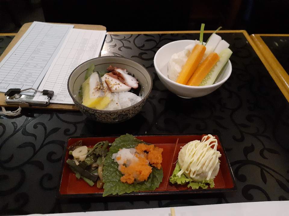 전채 요리와 사시미, 전채는 좌상단의 새콤한 국수가 나름 괜찮았고, 사시미는 음...딱히 엄청 신선하고 맛잇다 라는 느낌은 받지 못했지만, 큼직하게 썰어서 나오므로 두툼한 식감을 느낄 수 있다.