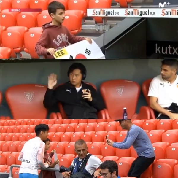 그 소년은 태극기와 이강인의 이름을 쓴 피켓과 함께 "내 꿈:너의 셔츠"라며 이강인을 바라봤다. 하지만 이강인은 "저기로 가봐"라는 동료 공격수 루벤 소브리노(27)의 조언에 손만 흔들어 줄 뿐 팬을 신경쓰지 않았다.