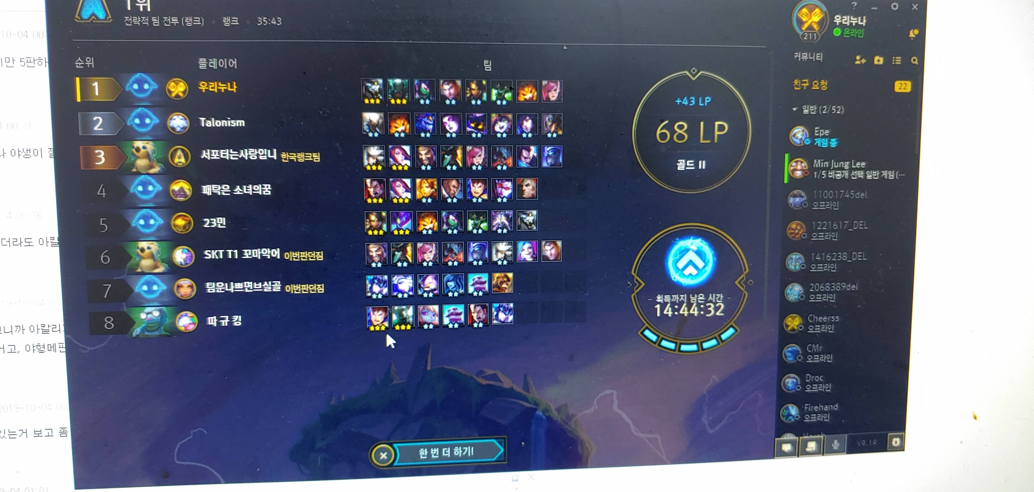 제이스한테 거학,인피,스태틱 몰아줬고 나르에는 초밥에뜬 유미를 넣어줌 사실 유미는 제이스3성찍을려고