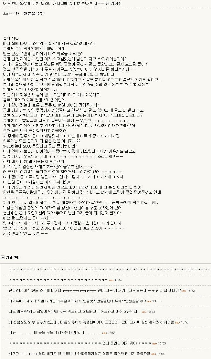 와창인생이 여자를 만날리가요