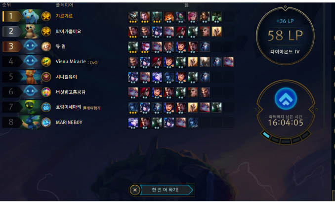 이덱은 아칼리2성 나르2성 랭가3성되면 3등 밑으론 안내려가는듯