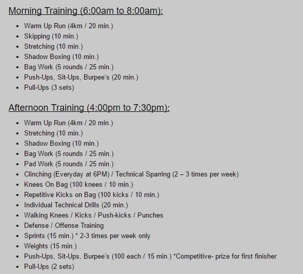 내가 갔다온 태국의 무에타이 클라스 시간표야