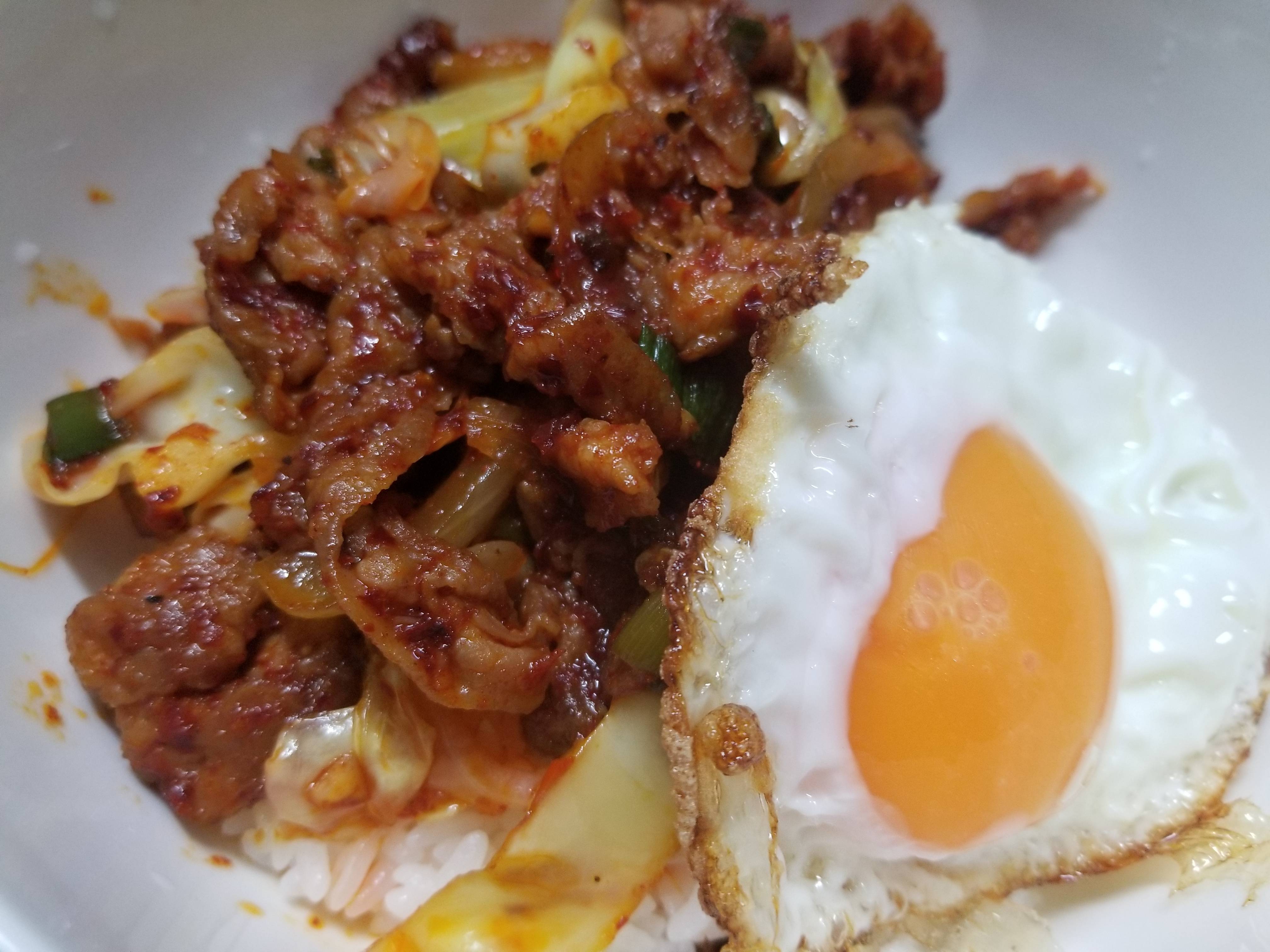 제육에 계란넣으면 매운맛줄어들어서 좋기만한디