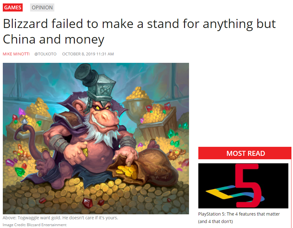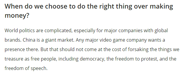 역시 논조는 레딧과 비슷하게 올바름을 강조하던 블리자드가 돈 앞에서 굴복했다