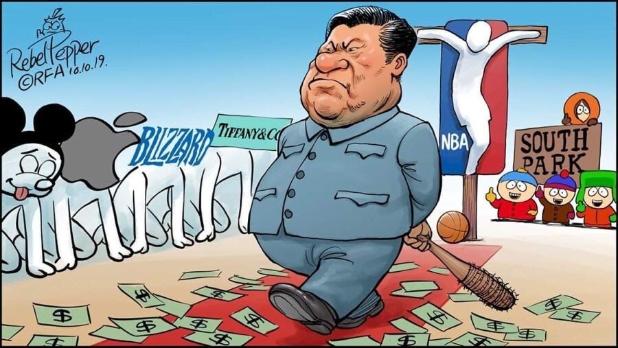 "NBA처럼, 우리도 우리의 집안과 마음 속에 중국의 검열이 들어오는 것을 환영합니다. 우리도 자유와 민주주의보다는 돈을 더 사랑해요. 시진핑은 전혀 곰돌이 푸와 닮지 않았습니다.