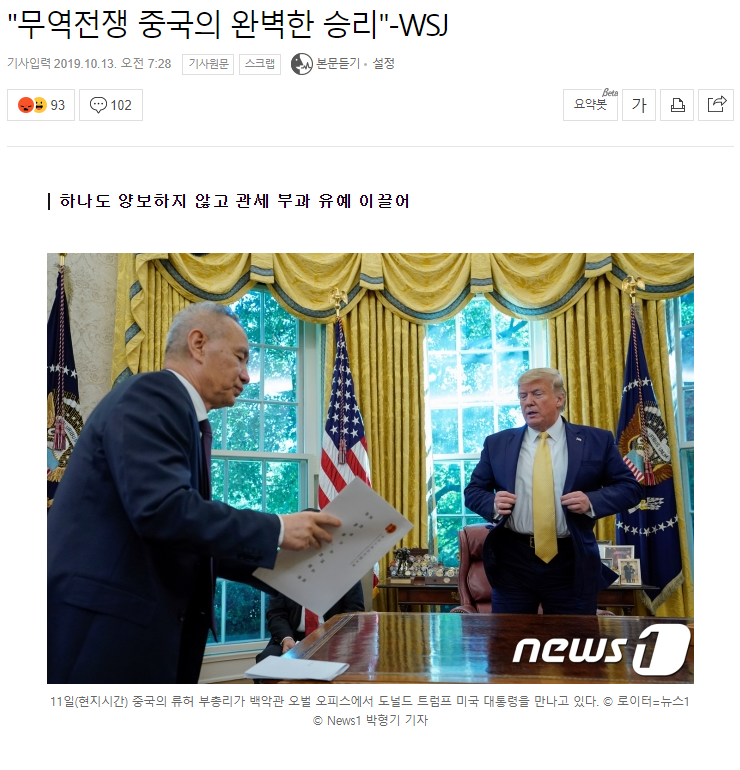 중국과 무역 전쟁을 종전하면서 압박 할 수 있는 카드던 홍콩 카드까지 포기했는데 결과를 보니 중국이 양보한건 사실상 하나도 없었다는 내용