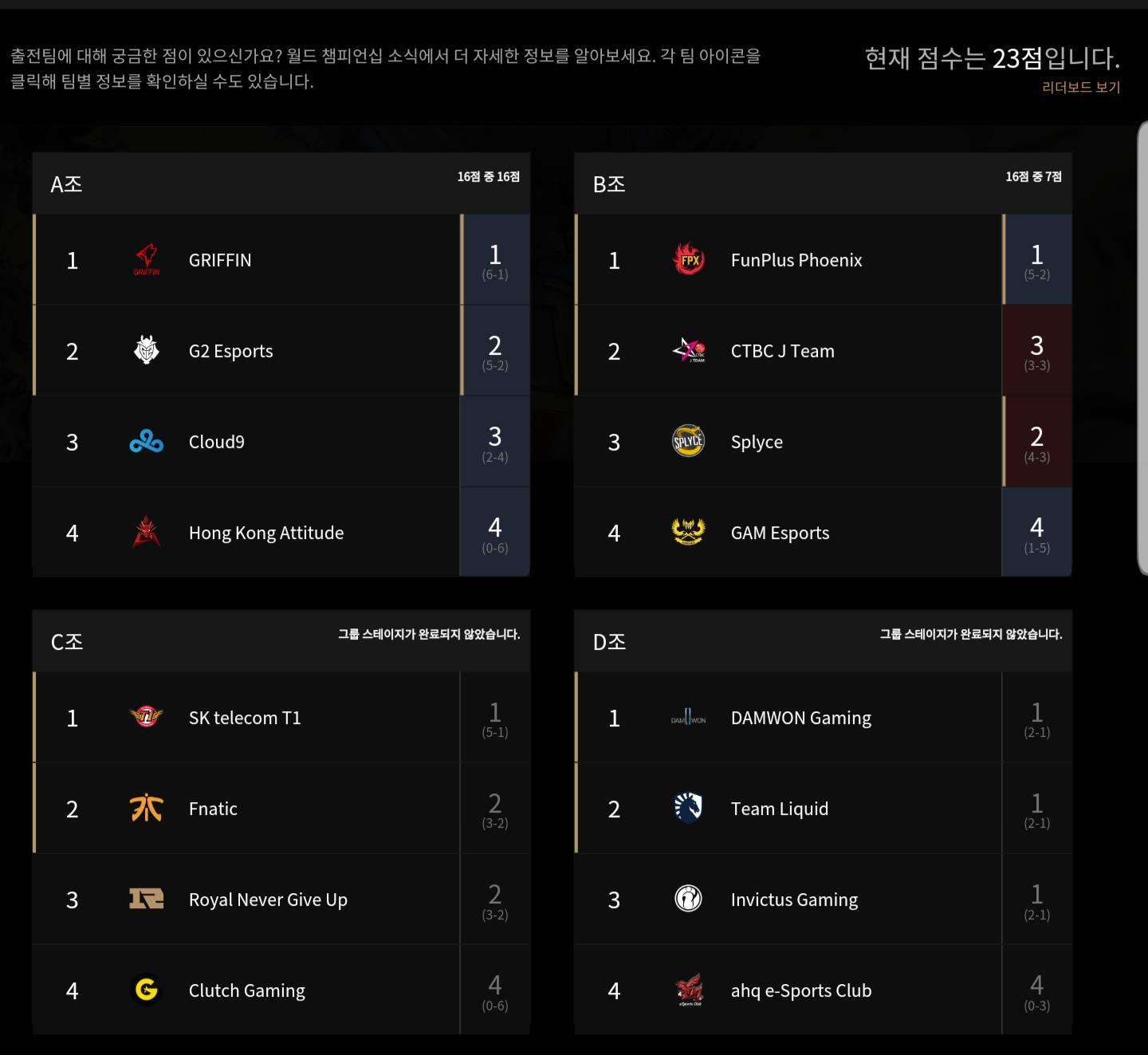 b조는 솔직히 펀플1위말고 뭐찍었는지기억도안난다 아는팀이없어서ㅋㅋㅋ 디조 담원아이지찍었는데 제발...이거라도...
