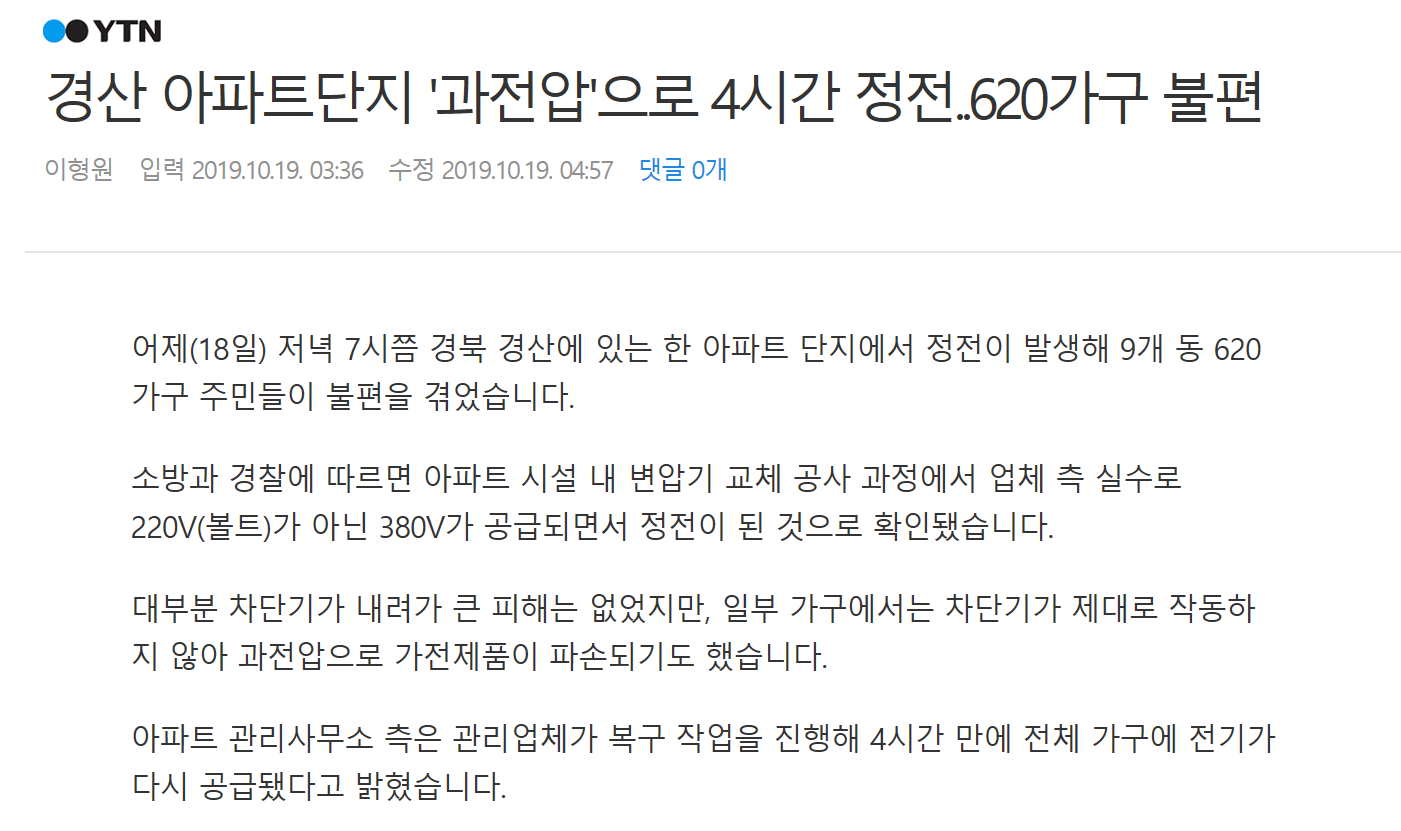 다 나간건 아닌듯. 차단기 제대로 작동하면 살고 아니면 죽고.