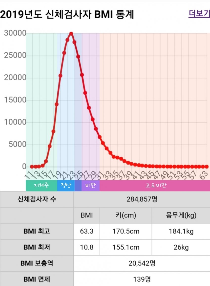 최고와 최저간 차이가 성인 남성 몸무게 두배인데?