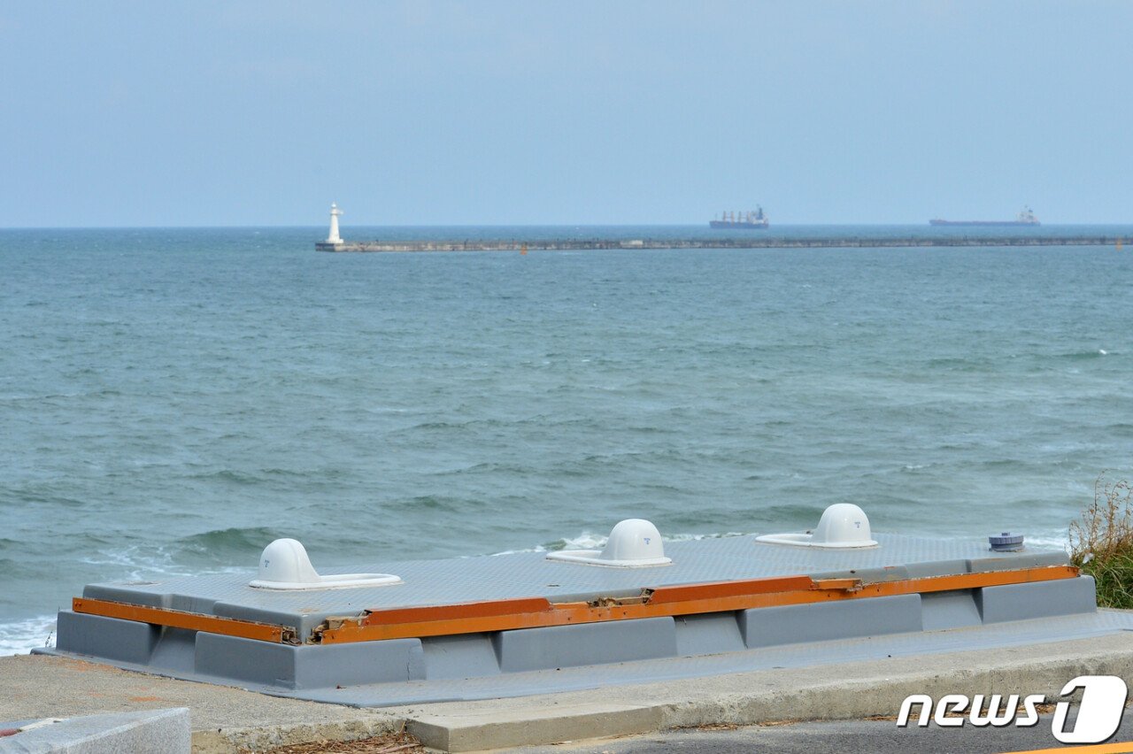 은 태풍 이후 수리안하고 있는 포항 해수욕장 화장실