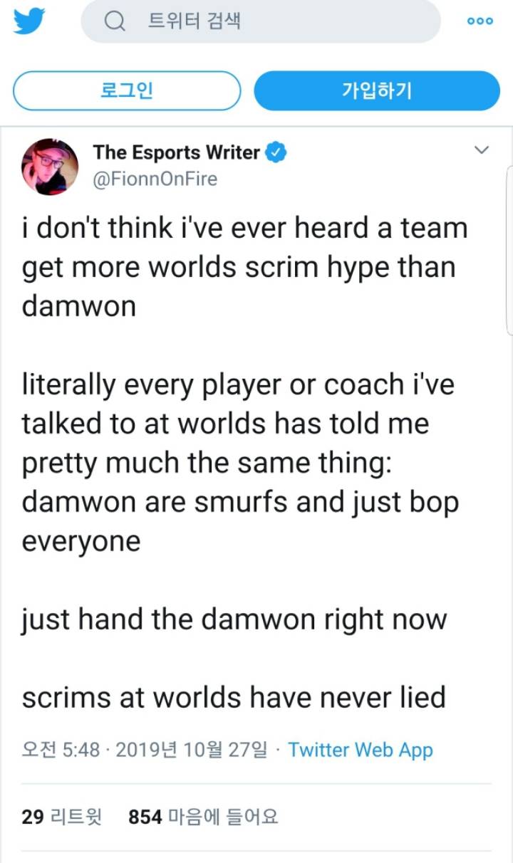 확인한 결과 롤드컵 역사상 가장 압도적인 스크림