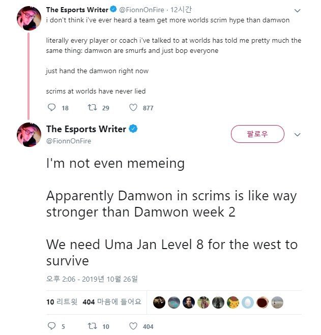 g2가 이기려면 기적이 필요하다고 이후 리트윗에서 언급