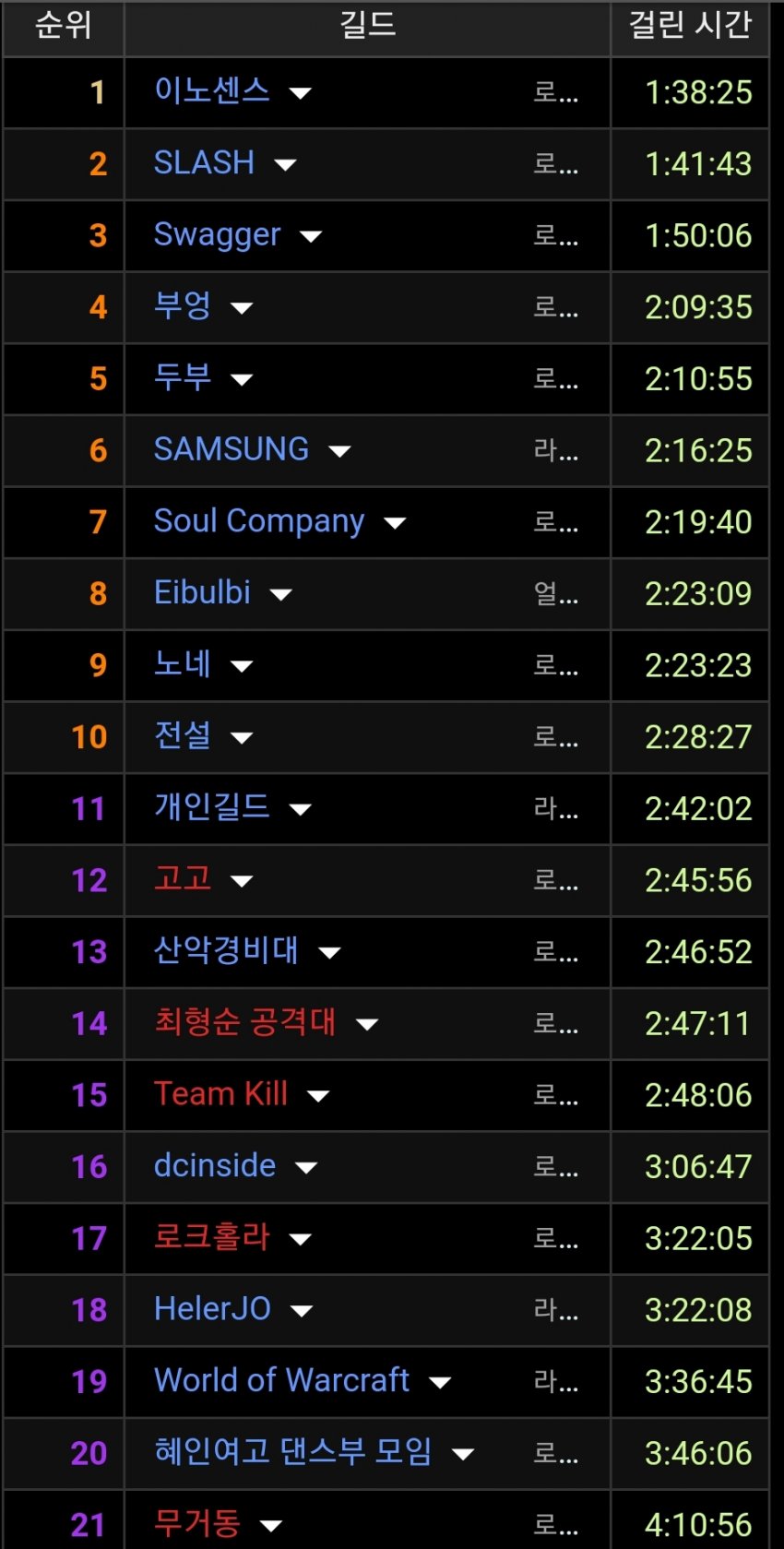 우리길드도 외부안받으면 저거 순위권안에 무조건들어 반으로 나눈것도 합치고