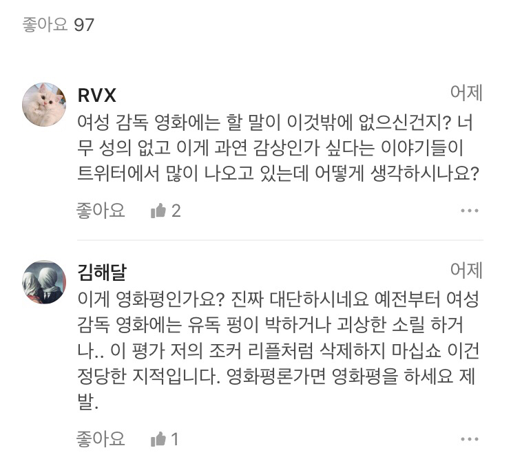 한줄평에 한줄써서 여혐
