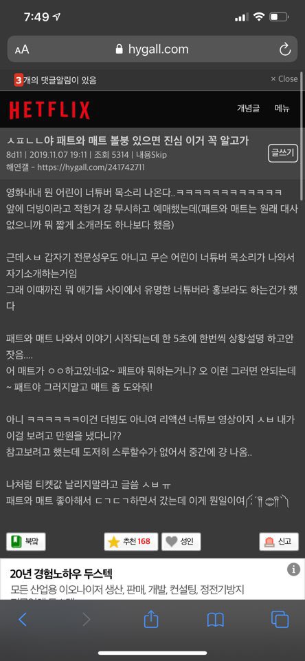패트와 매트 무성으로 표현하는 맛에 재밌으니까 상징적인건데 이걸 디용하게 만드네