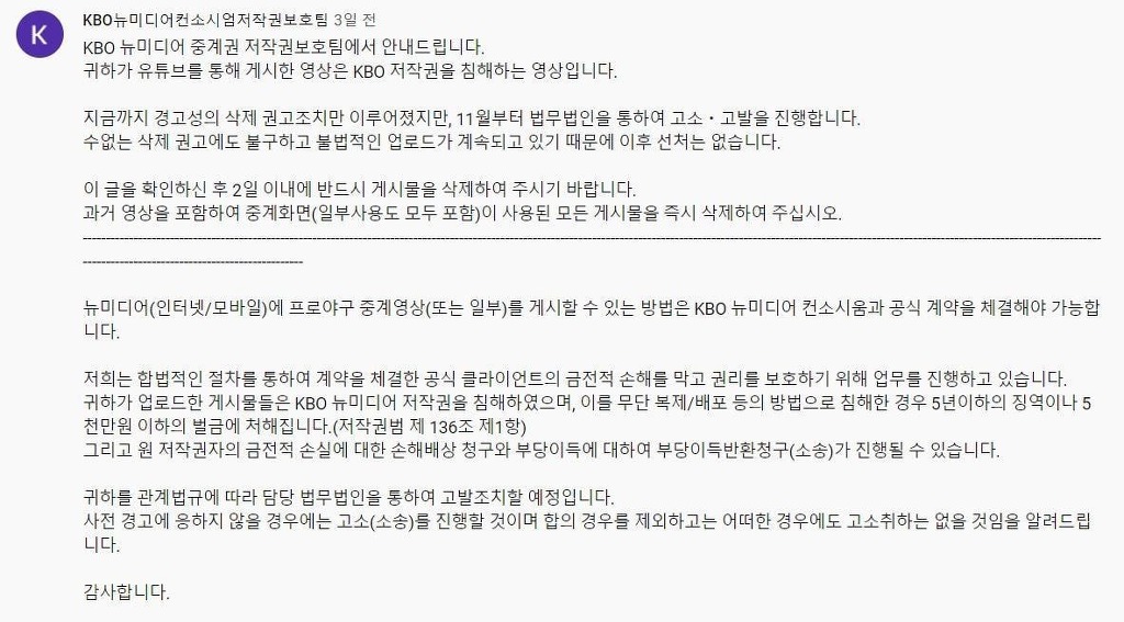 개인 SNS나 카페에 올려도 저작권법 위반으로 단속한다고 함