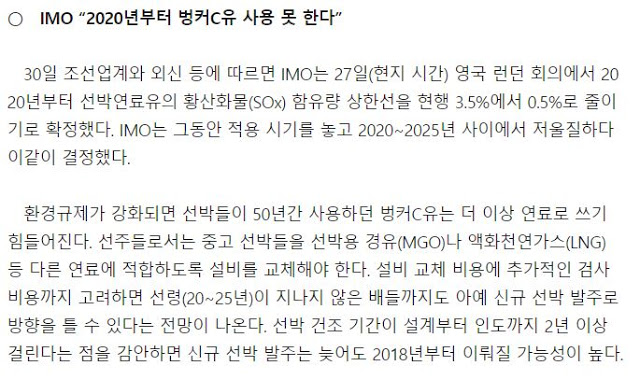 저유황유라고 하는데 문제는 벙커C유보다 1.5배가 비쌈