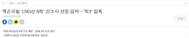 27. 로얄 더치 쉘이 개시를 하자 엑슨모빌이 한국 조선사들과 8척의 LNG추진선을 협상한다는 이야기가 나옴.