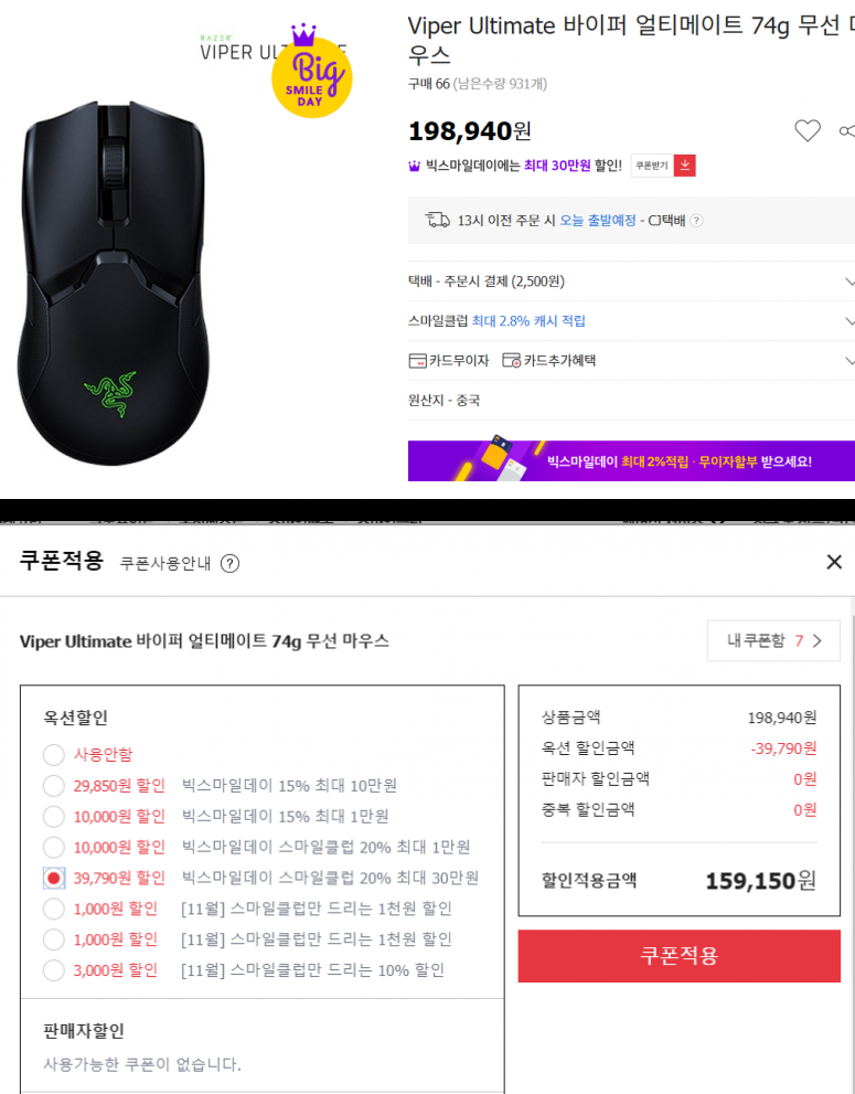 코밸 1픽 마우스 할인했는데 옛날 제품을 사다니 허허
