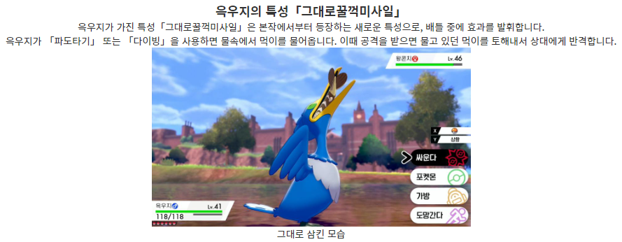 영국 리버풀의 상징인 가마우지를 모티브로 한 윽우지 라는 이름의 포켓몬