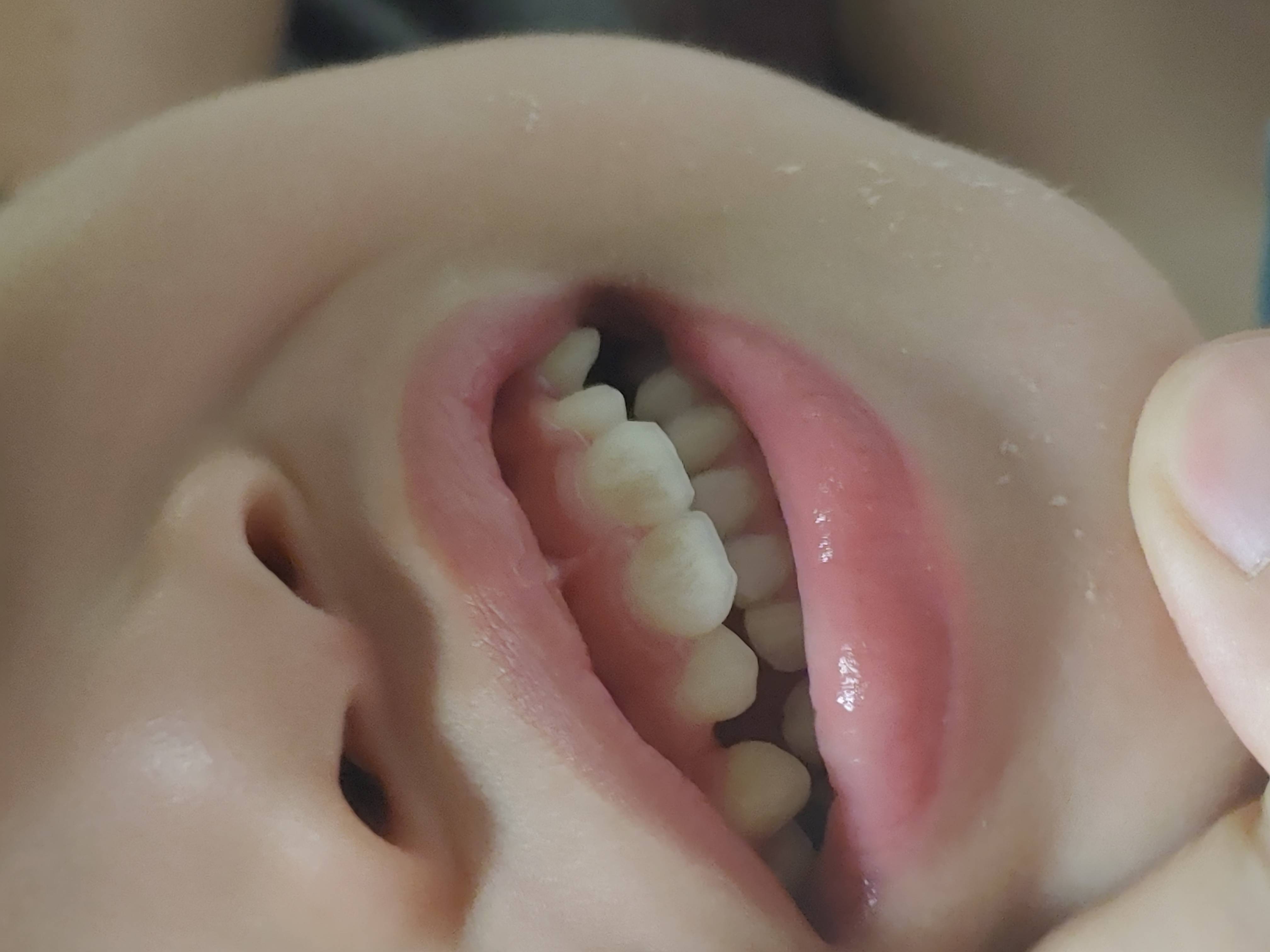 우리애가 평소에 토끼입처럼 윗앞니로 아랫입술을 깨물고있는 습관이 있음. 잘때도 아랫입술 빨면서 자곤 해서 윗앞니가 건조해질때가 많은데, 그때문이 아닌가 싶은데