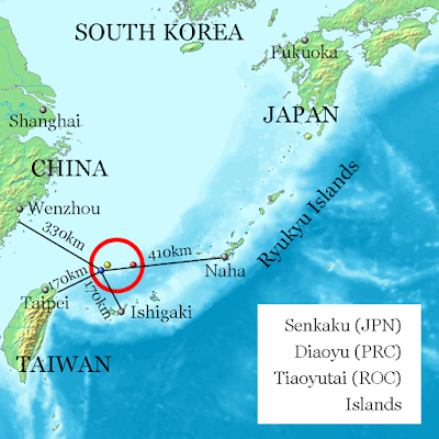 센카쿠제도는 대만앞에 있는 몇개 무인도와 암초임. 국제법상 무인도는 영해권의 기준이 될 수가 없지만 앞으로