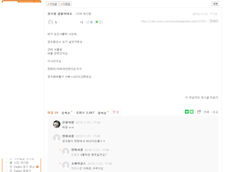 LG행 유력하다고함