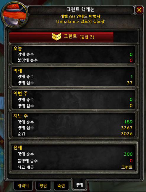 ㅇㅇ 정산 완료 됐으면 호칭도 생기고 명예탭에 등급도 뜸