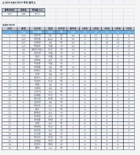 ☆최강 유격수 심우준☆은 아쉽게도 27위에 그쳤다