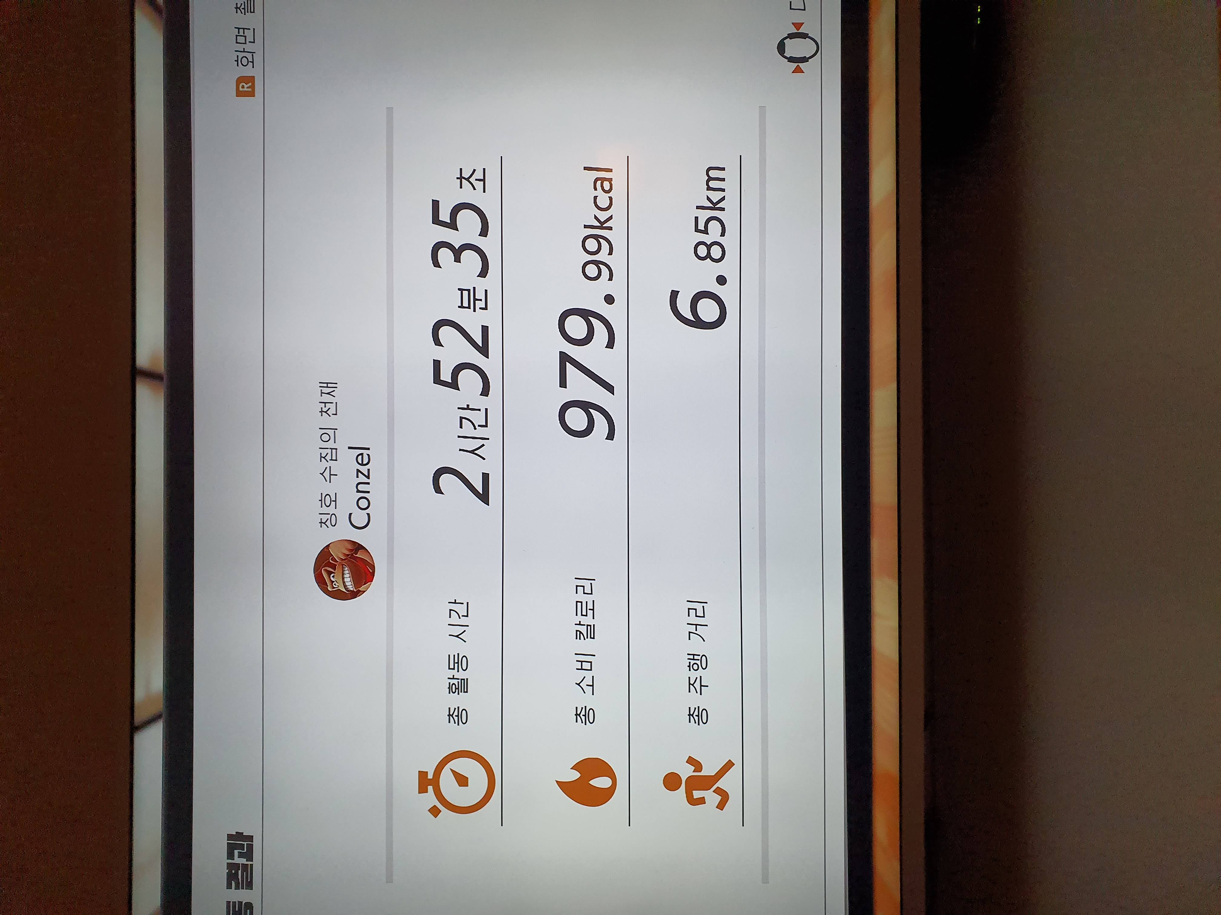 어제는 2시간 50분 999칼로리 오늘은 2시간 50분 980칼로리 쉬는날이라 이러케 함