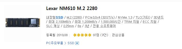 DRAMLESS NVMe 1tb 특가로 7만에 풀렸는데 못사고 미개봉으로 착불 7.5만에 구입