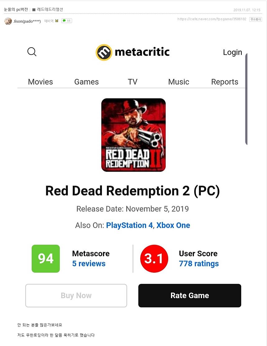 무한로딩, 그래픽깨짐, 팅김 등등 각종 문제가 많다고 PC판 평점 내려감 ㅋ