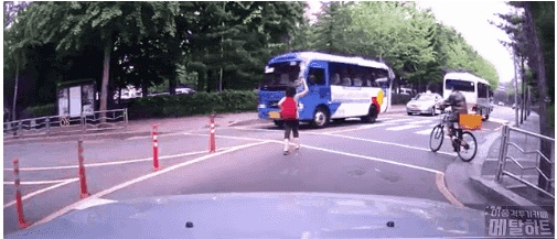 다만 위 짤은 택시시점에서는 저 애의 이전 루트가 의미없고 분명히 정식 횡단중인 상황인거고 (한마디로 사고내면 횡단보도 상 사고가 되는거고)