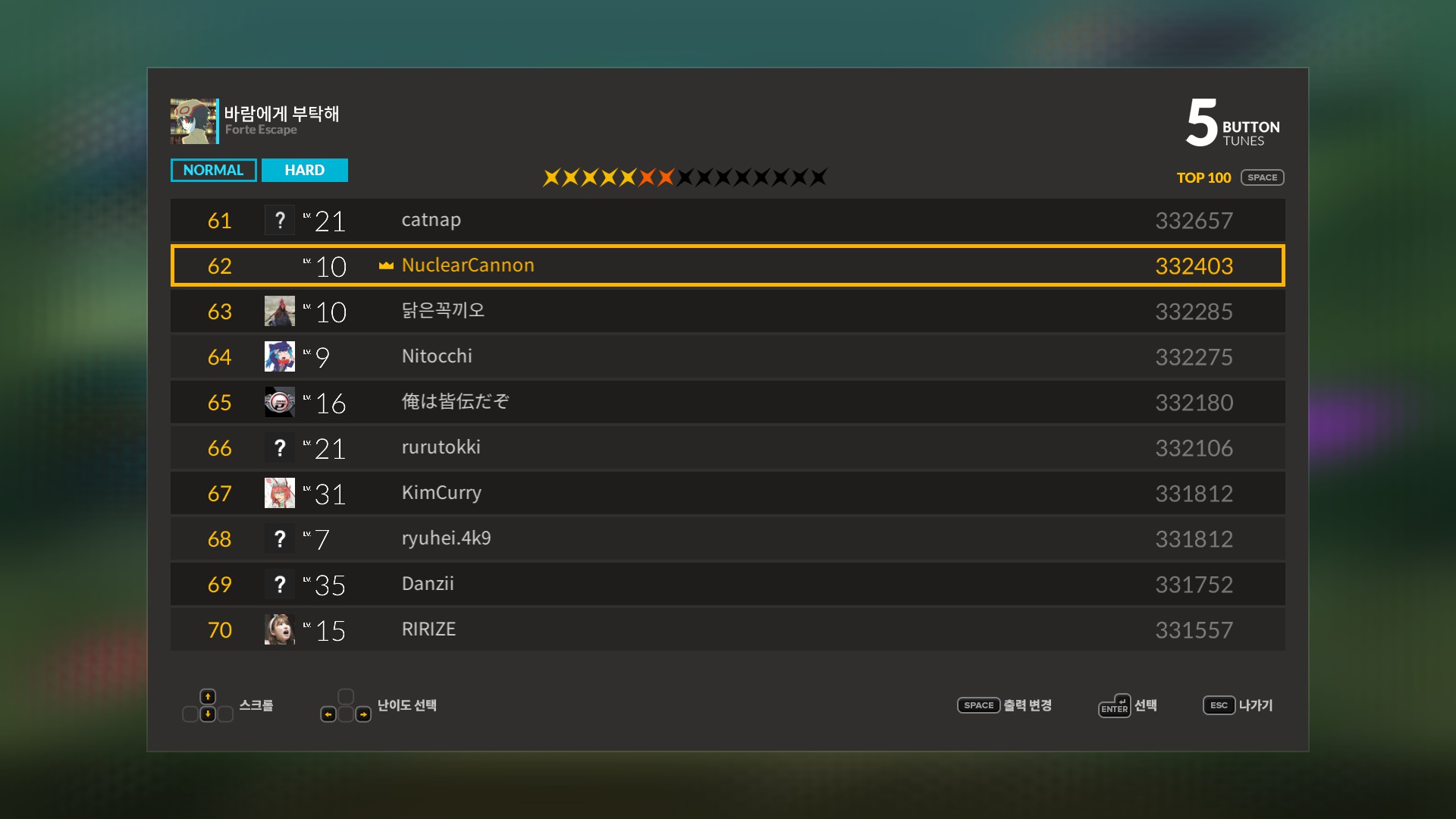 스샷은 바람5키 하드 랭킹 62위 ㅋㅋㅋㅋ