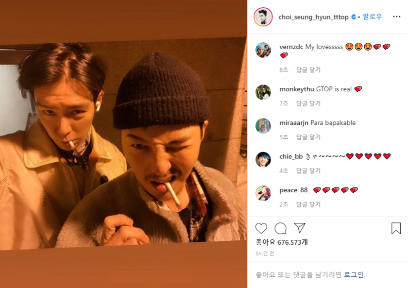 빅뱅 탑 인스타에 보란 듯이 사진 한 장이 올라옴...