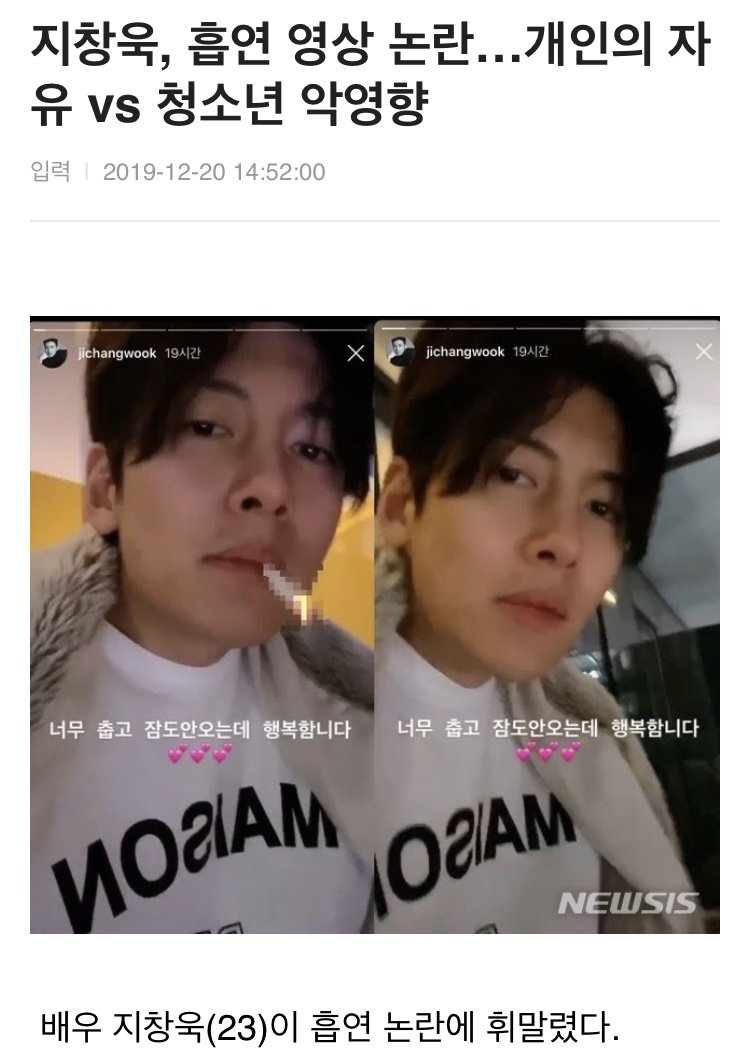 담배 사진 하나 올렸다가 어제 디지게 욕 쳐먹은 지창욱...