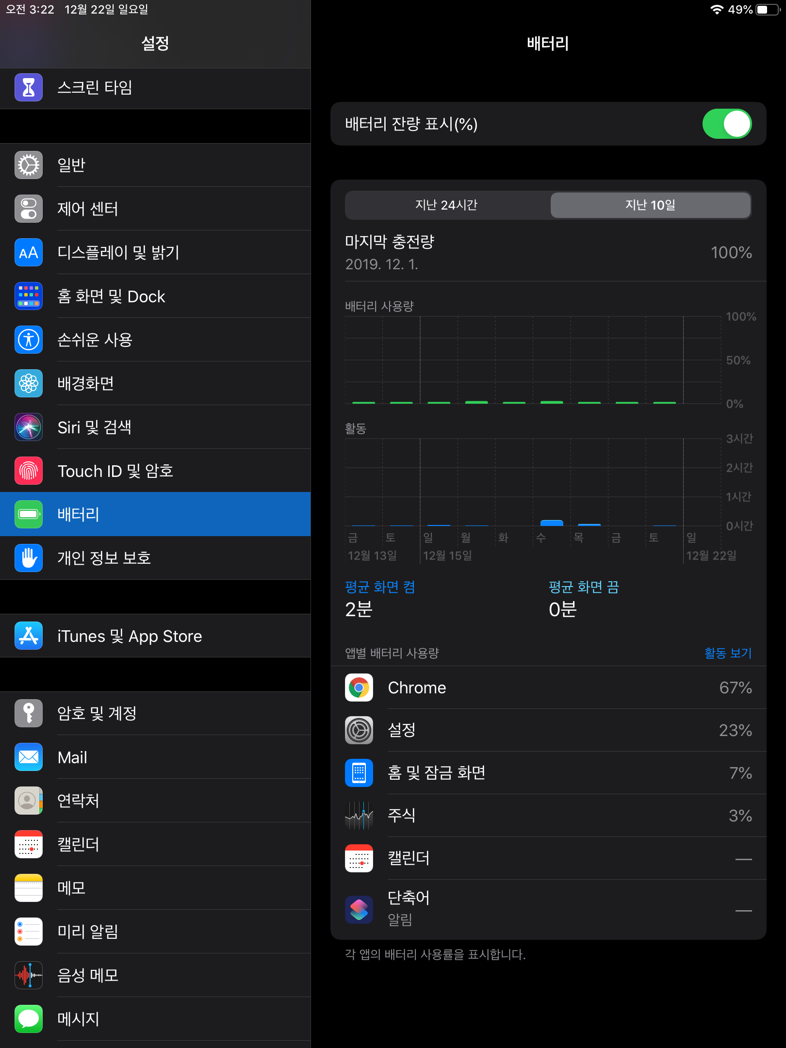 마지막 12월 1일 충전하고 50분장도 쓰고 냅뒀는데 50퍼정도 남음