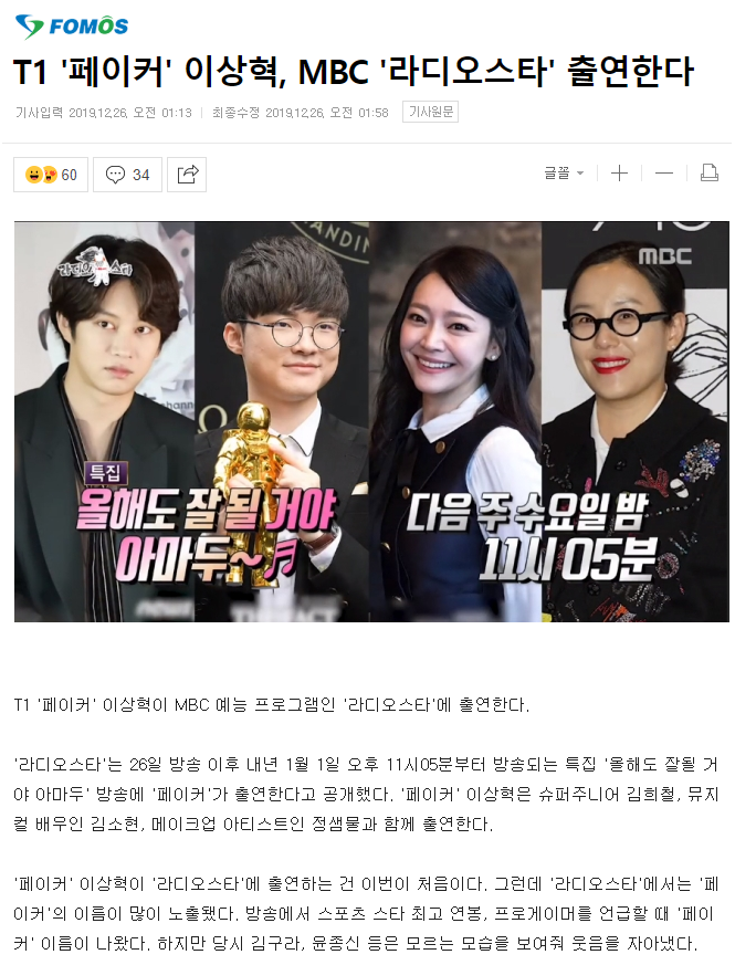 페이커때문에 겜잘알 김희철 일부러 넣어준 느낌