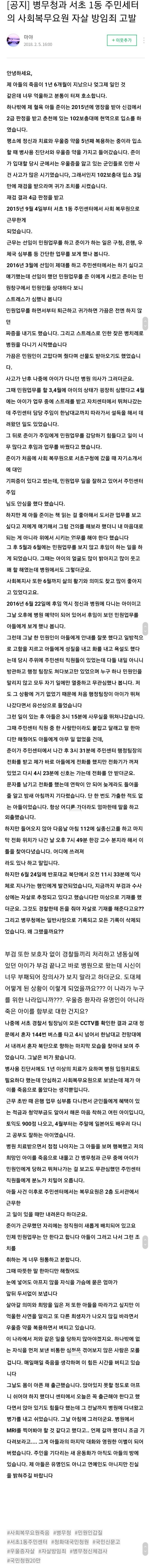 심지어 후임으로 민원업무 본다는애도 정신병원 다니는 애 ㅋㅋㅋ 뭐 저기 주민센터에서 일하려면 애미애비 불타뒤졌는지 증명서 내고 가는곳인가? 꼭 사람 죽어나가야 바뀌는곳이 헬조선 ㅋㅋ