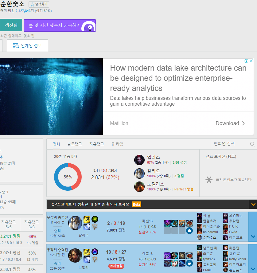 새벽에 와우랑 롤했음 나는 기만이란걸 모르는 사람이야