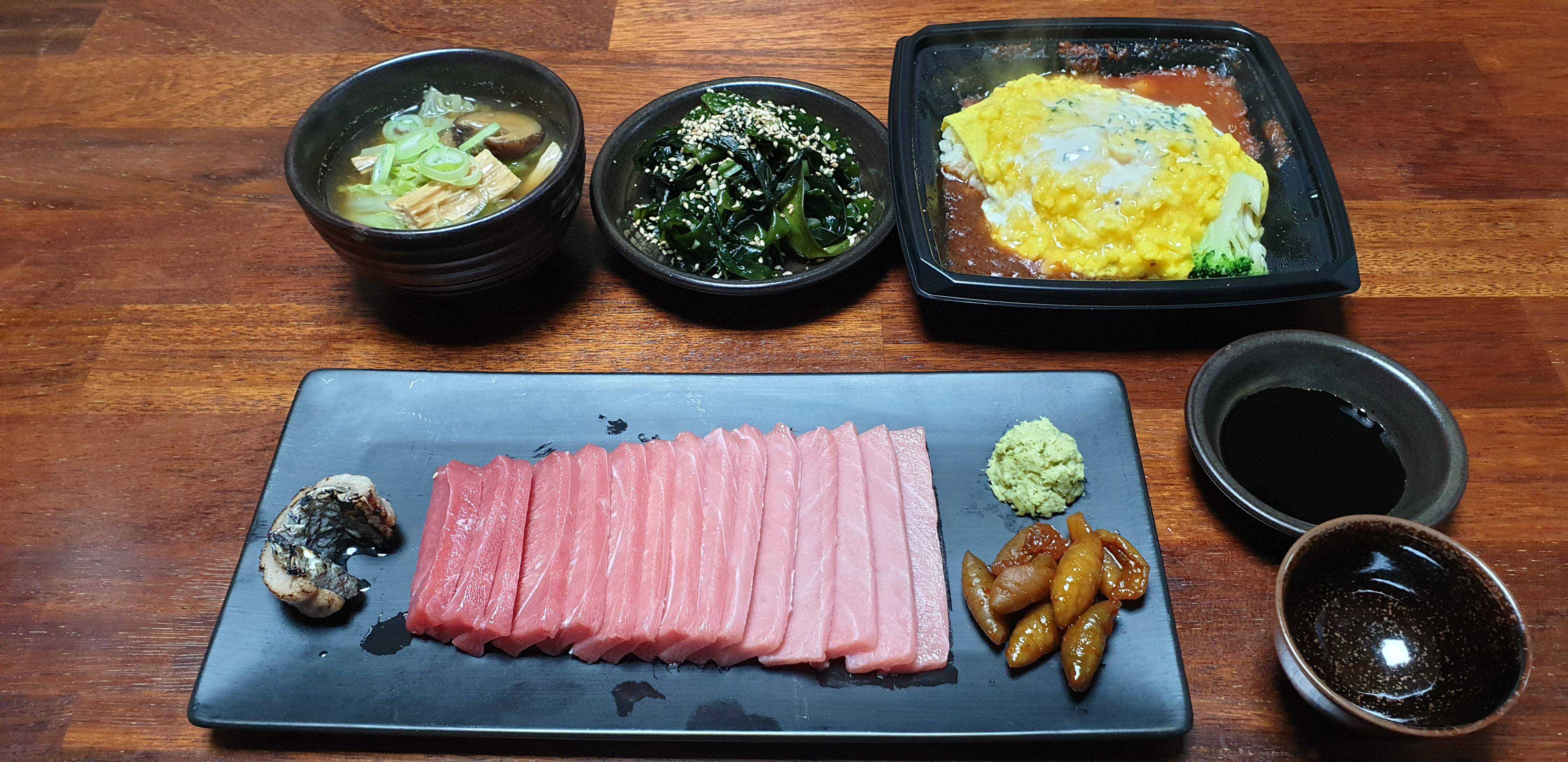 상식적으로 저게 다 냉장고에 있을리가 없잖아 미역무침은 마른 미역 불려서 무친거구요 된장국에선 멸치랑 파랑 배추만 들어있었고 건표고같은 건 실온 참치껍질은 냉동실에있던 횟감에서 도려낸거지